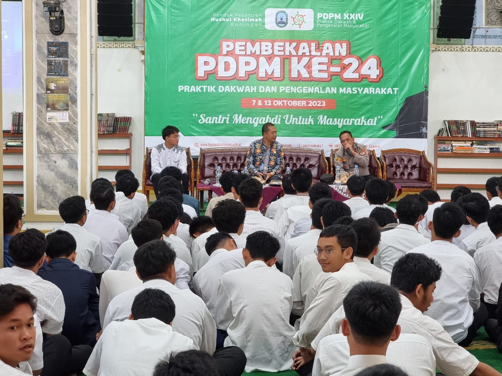 Majalengka – Sesuai arahan dari Kapolres Majalengka Polda Jabar AKBP Indra Novianto,S.I.K.,M.Si., CPHR., Kapolsek Cikijing AKP Rudy Djunardi M, S.H., M.H.melalui Panit Binmas Polsek Cikijing Polres Majalengka Polda Jabar IPDA Brigmono R, S.H memberikan Arahan Kepada Santri menjelang Praktek Dakwah dan Pengenalan Masyarakat (PDPM) dengan tema “Santri Mengabdi Untuk Masyarakat” di Wilayah Cikijing yang akan dilaksanakan pada tgl 29 Oktober 2023 oleh para Santriwan berjumlah 365 Santriwan dari Pondok Pesantren Husnul Khotimah Kuningan, Sabtu (14/10/2023).
