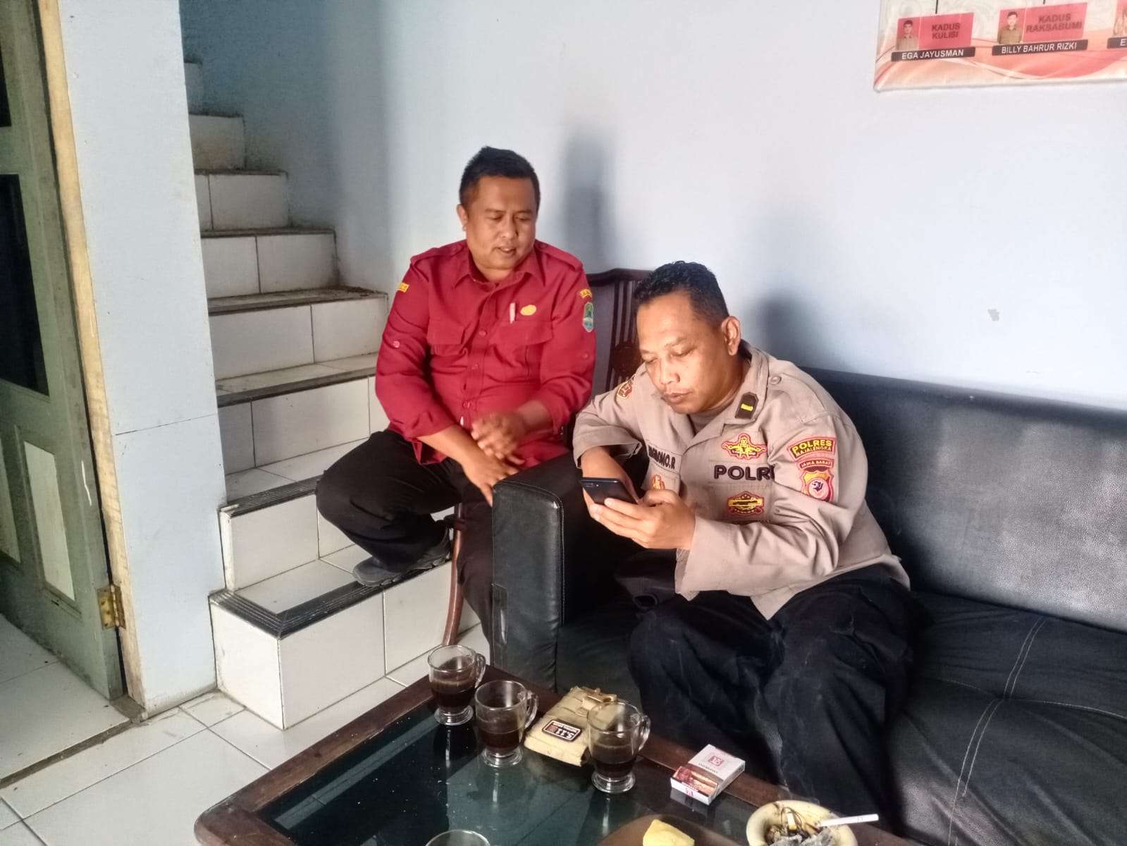 Majalengka – Polsek Cikijing Polres Majalengka Polda Jabar, Panit Binmas IPDA Brigmono R, S.H mensosialisasikan layanan kepolisian 110 kepada Perangkat Desa Sukasari,Kecamatan Cikijing,Kabupaten Majalengka, Rabu (06/09/2023).