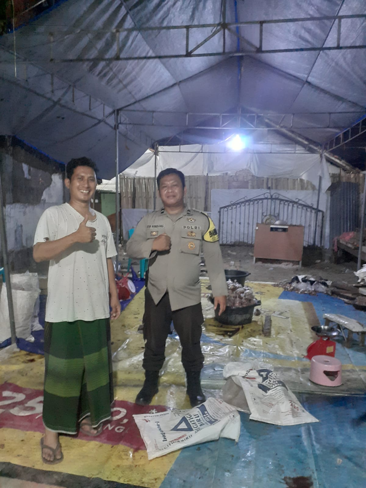 Bhabinkamtibmas kelurahan kasepuhan Aipda Oting sambangi distribusi daging qurban hari raya idul Adha 1445 H di RW 03 kelurahan kasepuhan menghimbau ciptakan kondusifitas Senin malam (17/06/2024).