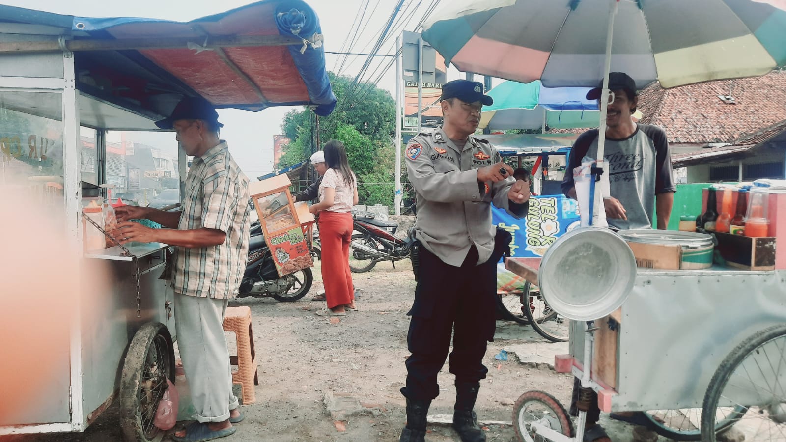 POLRES CIREBON KOTA,- Bhabinkamtibmas kelurahan Sukapura Polsek utbar Polres Cirebon Kota Polda Jabar Aiptu waryo jalin komunikasi kepada penjual jajanan danwarga di depan TK AL Hidayah pancuran kelurahan Sukapura kecamatan kejaksan Cirebon Kota, ajak dukung cooling system pilkada damai, Kamis (26/09/2024).