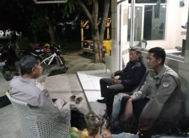 Bhabinkamtibmas Kelurahan kesambi Aiptu Ade Wardaya, sambangi sambangi petugas satpam yang sedang jaga malam di perumahan kesambi regensy kelurahan kesambi melalui berikan binluh Kamtibmas, Minggu malam (08/09/2024).