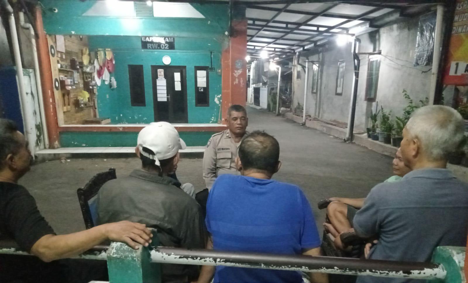 Bhabinkamtibmas Kelurahan Kesambi AIPTU Ade Wardaya , menyatu bersama warga melalui melalui patroli dialogis di RW 06 kesambi dalam ajak jaga kerukunan Pemilu 2024 di lingkungan , Sabtu malam (18/05/2024).