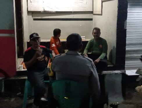 Bhabinkamtibmas Kelurahan Kesambi AIPTU Ade Wardaya, menyatu bersama warga melalui melalui patroli dialogis di RW 03 kampung melati kesambi saat jaga malam, ajak bersama-sama jaga kewaspadaan dan kondusiitas lingkungan, Minggu malam (01/09/2024).