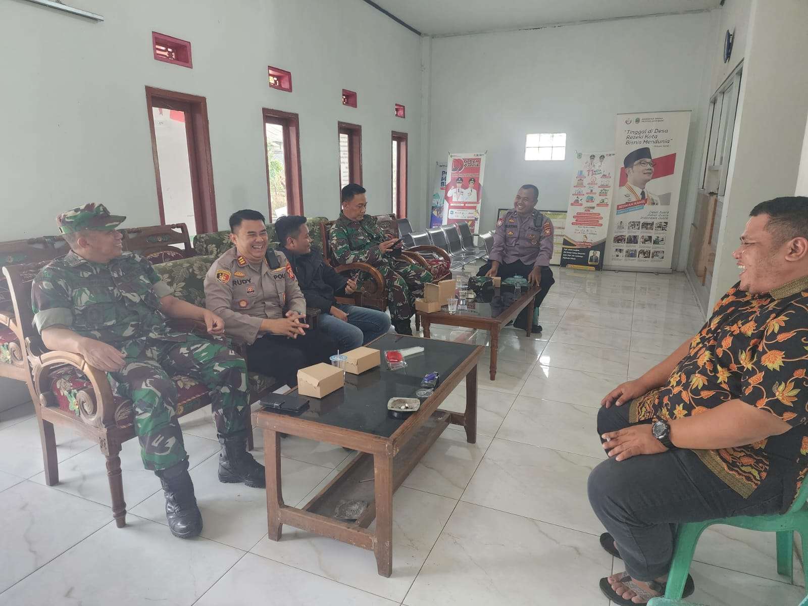 Pada kesempatan Sambang Silaturahmi tersebut Kapolsek Sukahaji menyampaikan himbauan dan pesan-pesan kamtibmas kepada Perangkat Desa untuk bisa kembalikan budaya Siskamling dan biasakan kepada para tamu atau pendatang untuk wajib lapor.