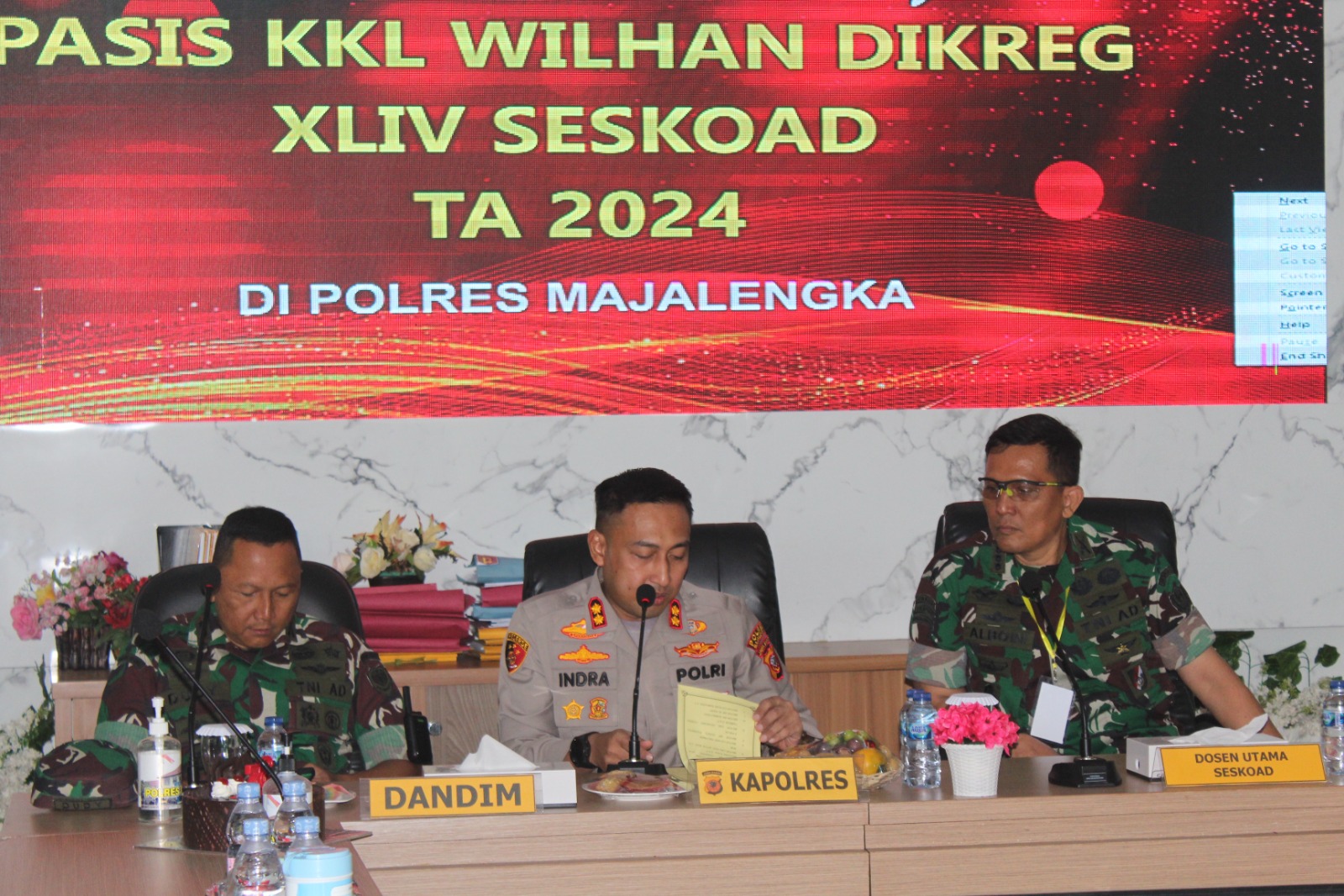 Hadir dalam kegiatan tersebut antara lain Kajari Kabupaten Majalengka Wawan Kustiawan, S.H, Dosen Utama Pasis Dikreg LXIV Seskoad Kolonel Inf Ramces Albion, S.Pd., M.Han., M.M., dan Patun Sindikat XIX Kolonel Kav Dr. Susanto, S.I.P., M.A.P.
