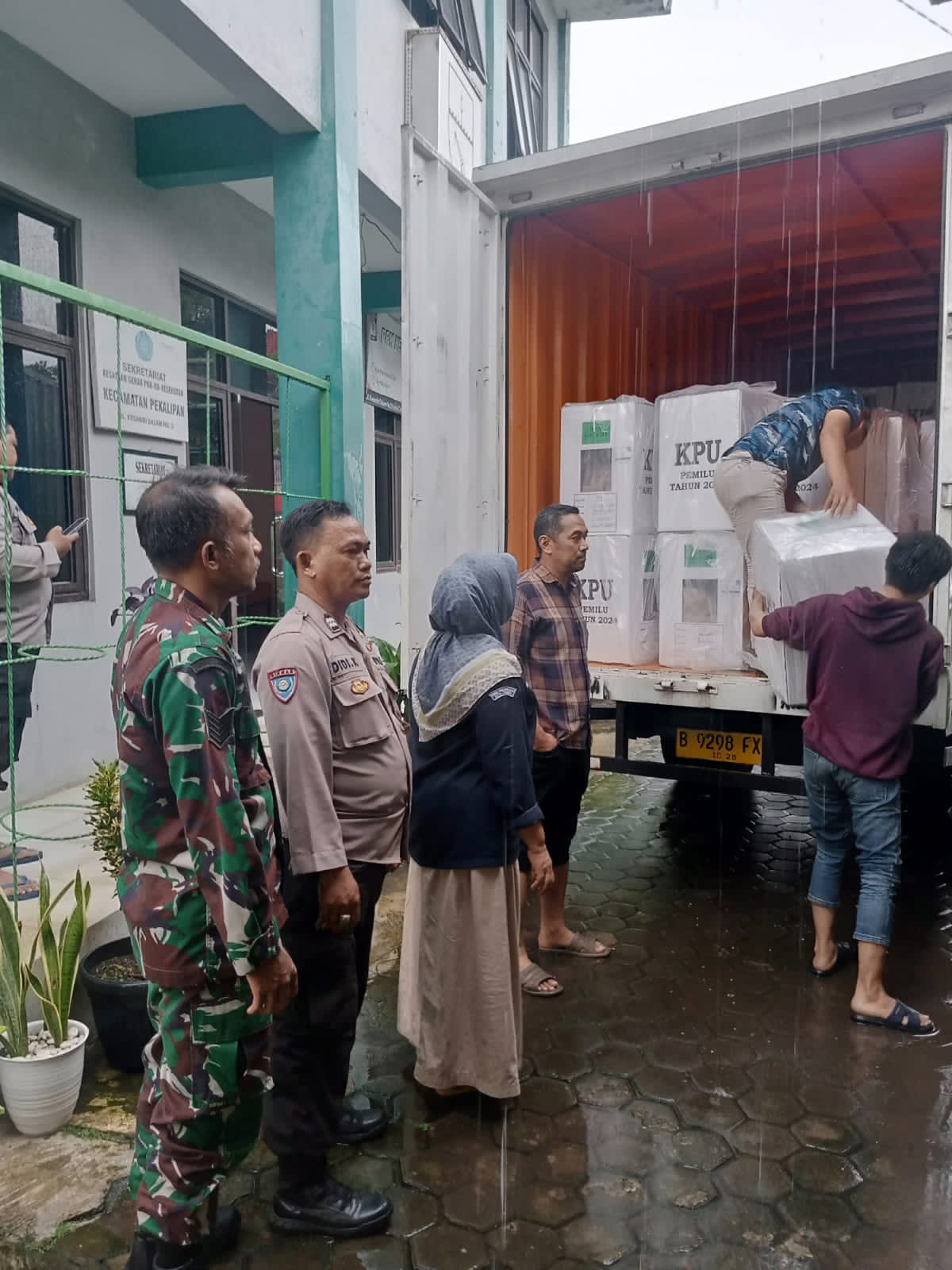 Bhabinkamtbmas kelurahan Pekalipan Polsek seltim Polres Cirebon kota Polda Jabar Aiptu Didi monitoring distribusi Logistik Pemilu 2024 di Kecamatan Pekalipan Minggu (11/02/2024)