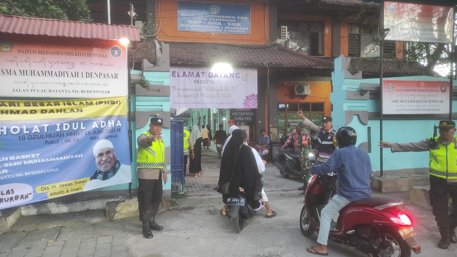 Pastikan Aman Dan Kondusif, Polsek Denpasar Barat Laksanakan Pam Sholat Idul Adha 1444 H .