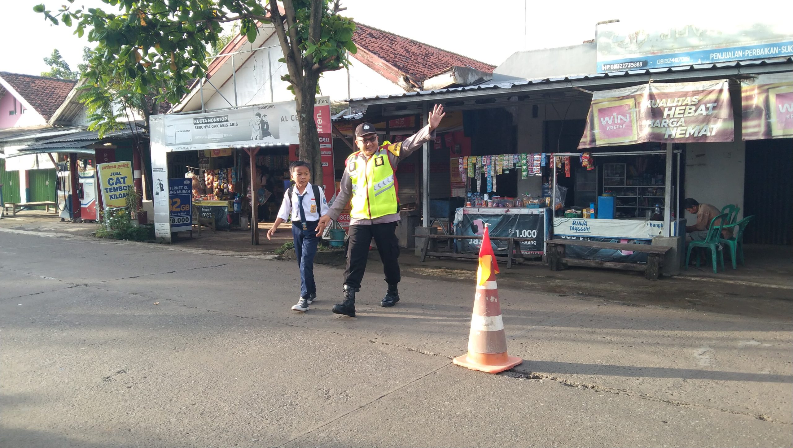 Seperti yang dilakukan oleh Aiptu Robet Adi S., anggota Polsek Gantar, yang tampak membantu para pelajar menyeberang jalan di depan SMPN 1 Gantar, Kecamatan Gantar, Kabupaten Indramayu. Jumat pagi (31/1/2025)