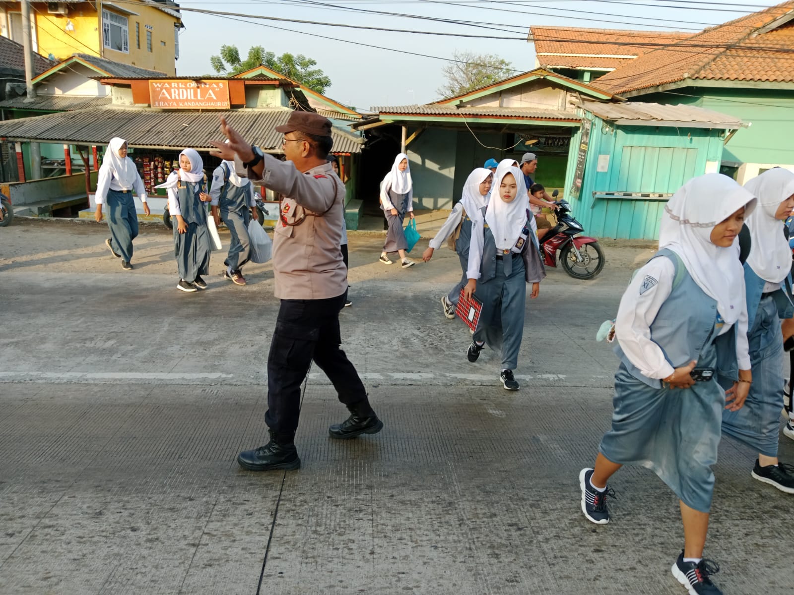 Kapolres Indramayu, AKBP Ari Setyawan Wibowo, melalui Kapolsek Kandanghaur AKP Surahmat, menyampaikan bahwa anggota Polsek Kandanghaur secara konsisten melaksanakan tugas pengaturan arus lalu lintas dan membantu menyeberangkan anak-anak sekolah setiap pagi dan siang hari.