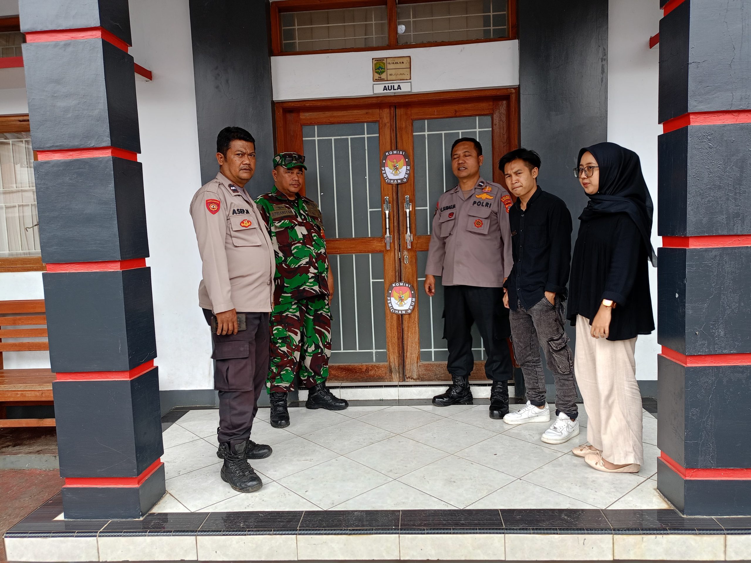 Majalengka – Personil Polsek Cikijing Polres Majalengka Polda Jabar, Ps. Panit Samapta l Aipda Eman Subagja, Ka SPKT l Aipda Asep Nugroho, Babinsa Koramil 1705 Cikijing Serda Apriansyah meningkatkan kegiatan patroli dan monitoring serta pengecekan terhadap gudang logistik persiapan Pemilu di PPK Cikijing, Kamis (08/02/2024).