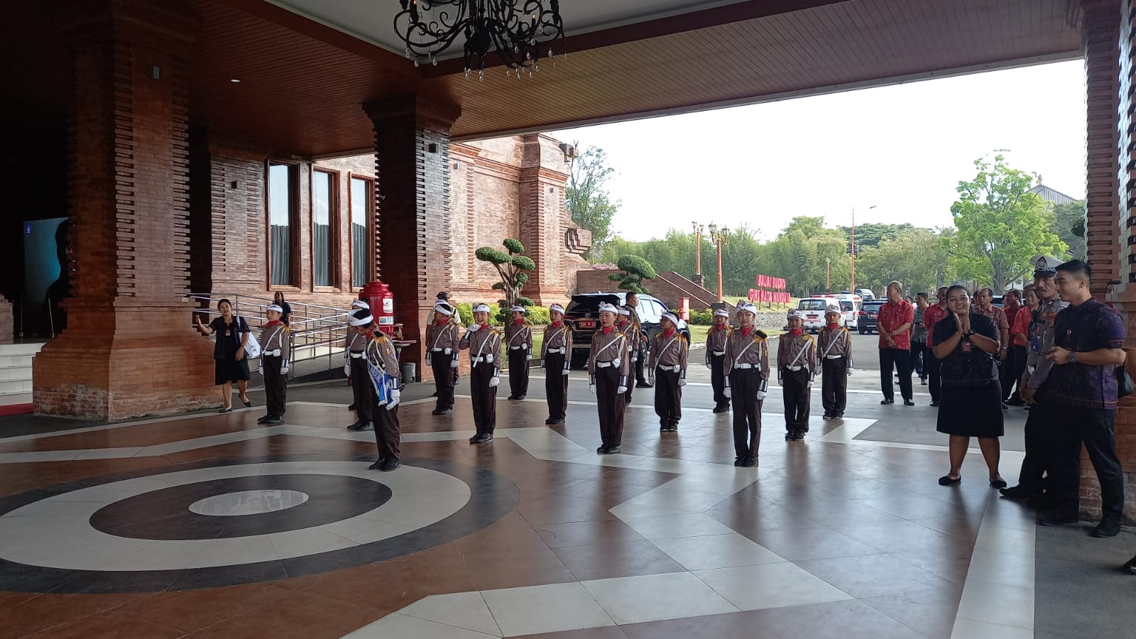 “Hari ini Kami dari unit Kamsel (Keamanan dan Keselamatan) Sat Lantas Polres Badung mendampingi anak-anak SD N 2 Tibubeneng yang mendapat kehormatan untuk menyambut kedatangan Ibu Menteri PPPA di Gedung Balai Budaya Puspem Kabupaten Badung” Ujar P.S. Kanit Kamsel Aiptu I Putu Ariasa, SH.