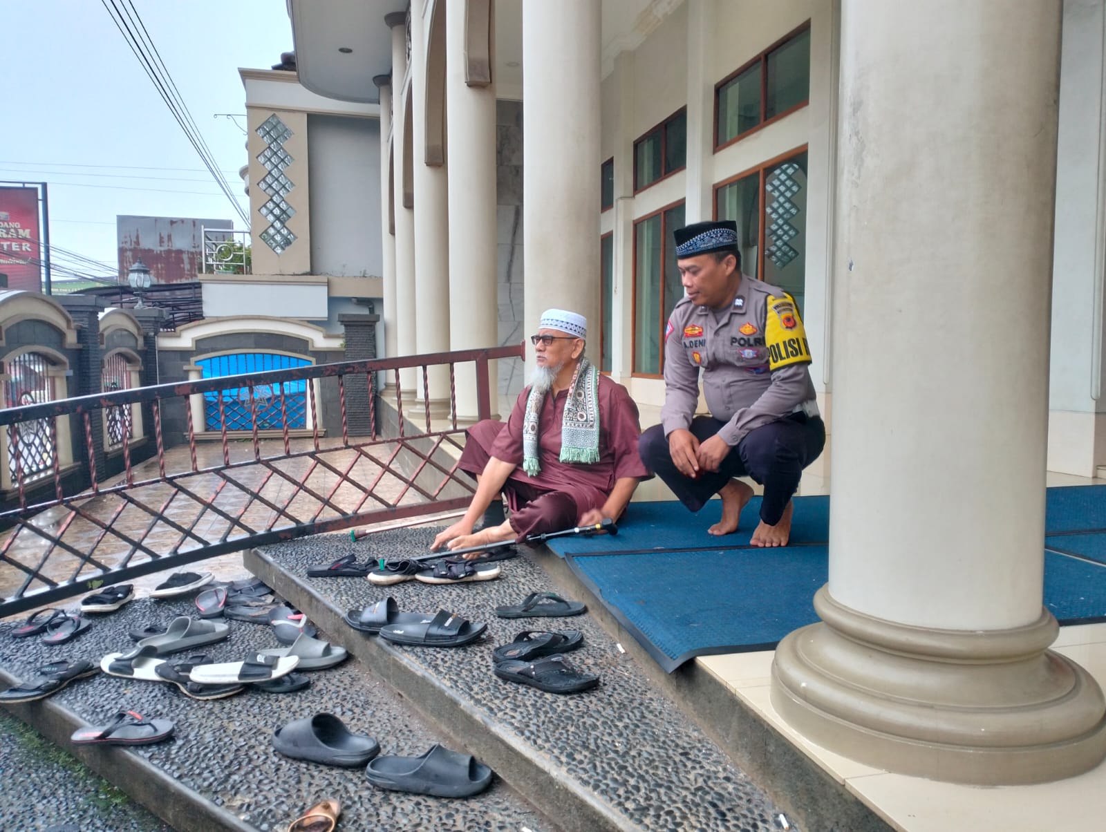 Majalengka – Ps. Panit Lantas Polsek Cikijing Polres Majalengka Polda Jabar Aiptu Ade Deni H menjalin silaturahmi dengan KH. Abdurachman guna memberikan pesan kamtibmas di Masjid Al-Akbar Desa Cikijing, Kecamatan Cikijing, Kabupaten Majalengka, Rabu (12/07/2023).