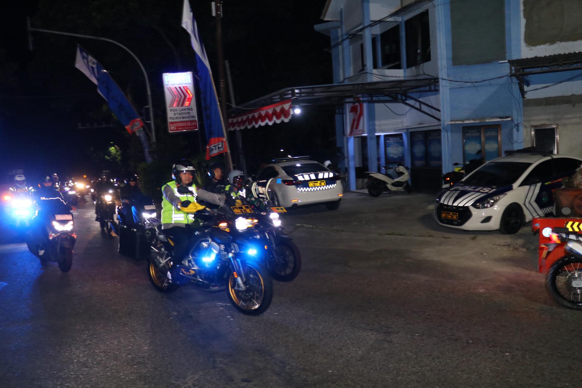 Patroli ini dipimpin langsung oleh Kapolres Magetan AKBP Raden Erik Bangun Prakasa dan Dandim 0804/Magetan Letkol Inf Hasan Dasuki.