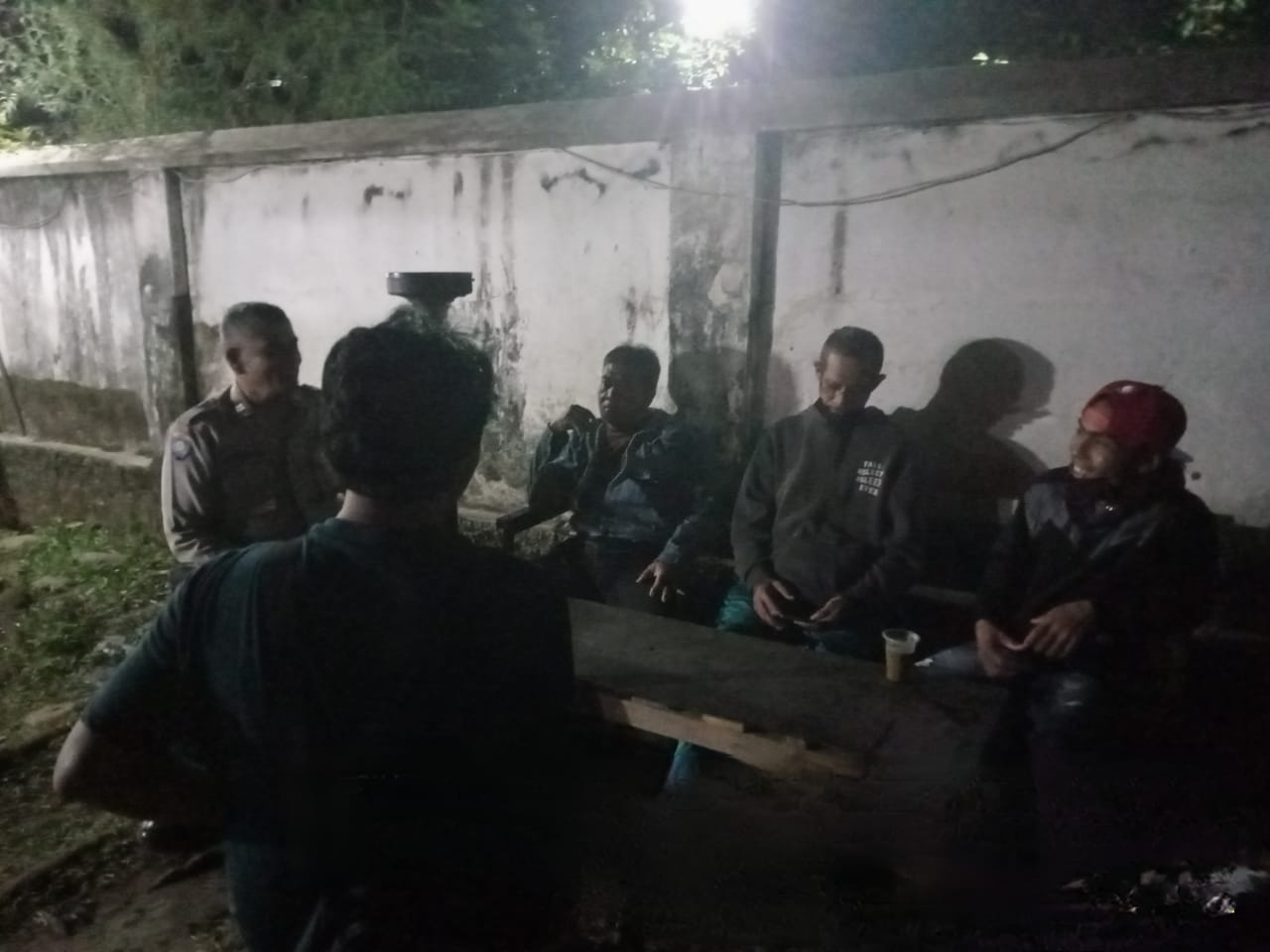 POLRES CIREBON KOTA -, Pantau siskamling, Bhabinkamtibmas kelurahan kesambi Polsek kesambi Polres Cirebon kota Aiptu Ade Wardaya sambang poskamling RW 04 sigendeng kelurahan kesambi memberikan edukasi Kamtibmas, Sabtu malam (20/07/2024)