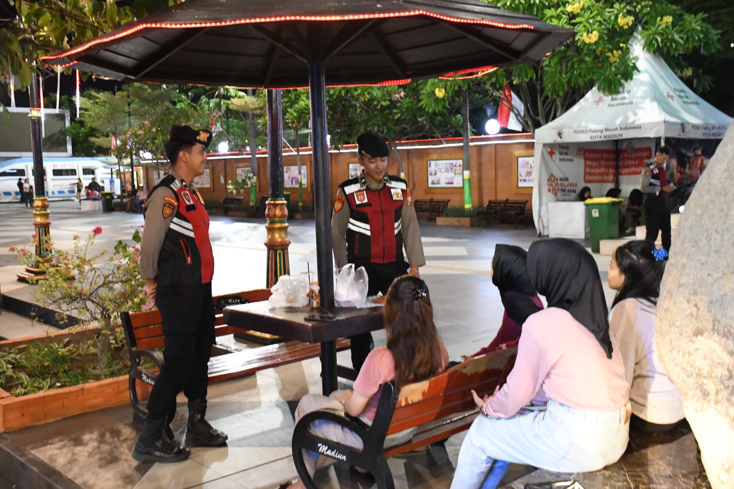 Personel Polres Madiun Kota bersama jajaran terkait melaksanakan giat patroli dialogis di seputaran Pahlawan Street Center (PSC), sekaligus menyapa masyarakat yang tengah menikmati suasana malam.