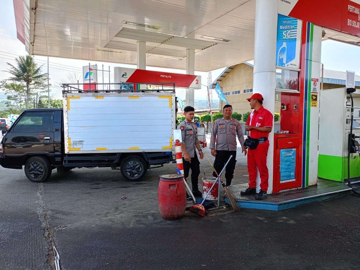 Majalengka – Personil Polsek Cikijing Polres Majalengka Polda Jabar Brigadir Riki Gemi dan Bhabinkamtibmas Briptu Pijar melakukan Pengamanan dan monitoring di SPBU Cikijing Kabupaten Majalengka, Selasa (05/09/2023).