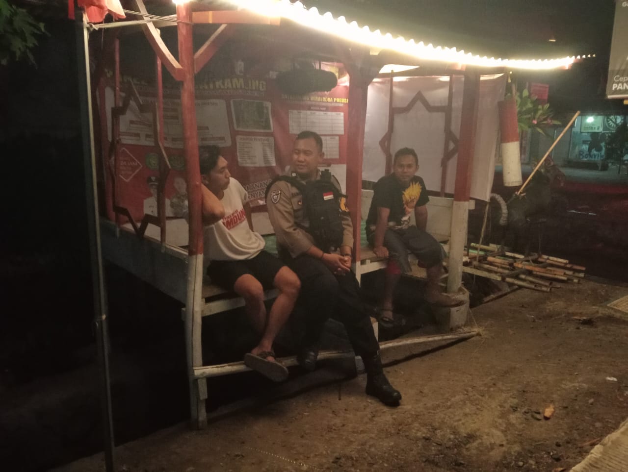 Sembari duduk dan berbincang dengan Petugas Ronda, Anggota Patroli menyampaikan pesan-pesan dan himbauan Kamtibmas.