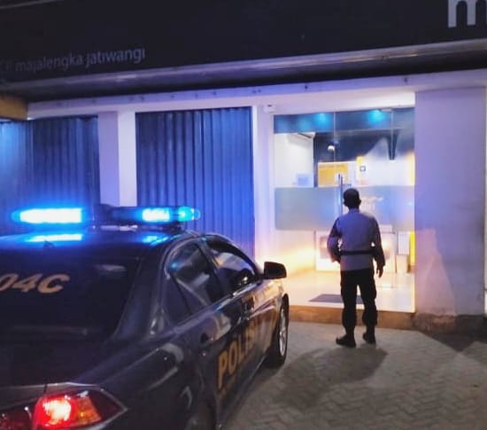 Kali ini, kegiatan patroli malam menyasar ke Bank Mandiri Jatiwangi. Anggota piket Polsek Jatiwangi berdialog dengan pihak keamanan bank, memberikan himbauan tentang keamanan dan ketertiban serta mengumpulkan informasi terkait potensi gangguan harkamtibmas yang mungkin terjadi di sekitar lokasi tersebut.