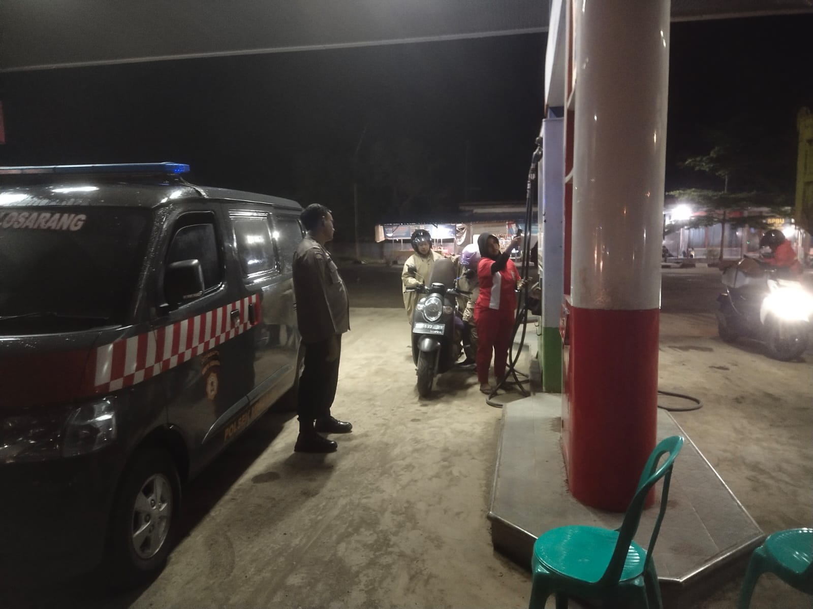 Di salah satu lokasi patroli, tampak anggota Polsek Losarang berhenti di SPBU untuk memantau aktivitas masyarakat yang sedang mengisi bahan bakar.