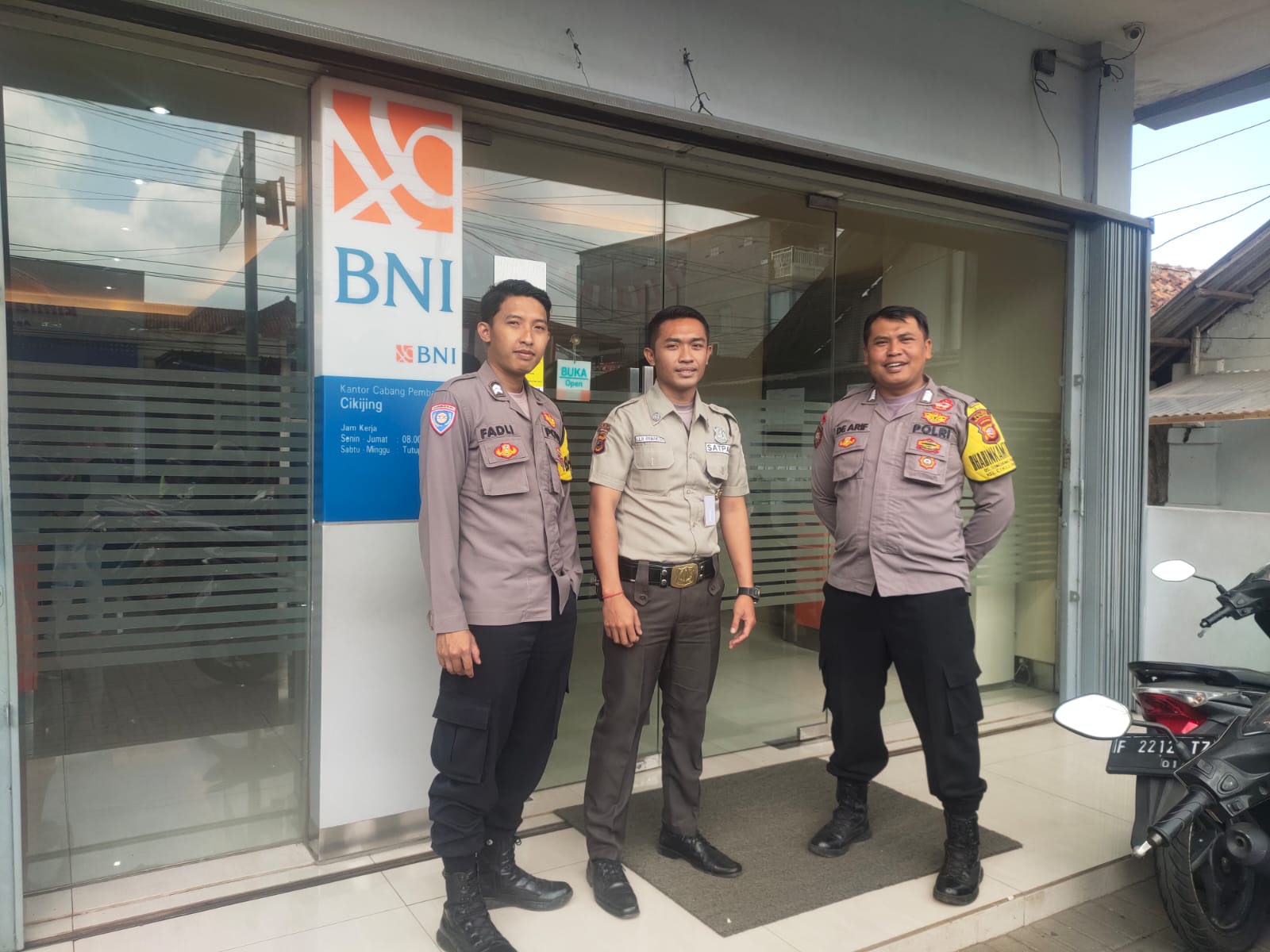 Majalengka – Untuk memberikan Pengamanan pada Obyek Vital yang ada di wilayah hukum Polsek Cikijing, Bhabinkamtibmas Polsek Cikijing Polres Majalengka Polda Jabar, Bripka Dede Arif dan Briptu Fadli melaksanakan Patroli ke Bank BNI KCP Cikijing, Sabtu (26/08/2023).