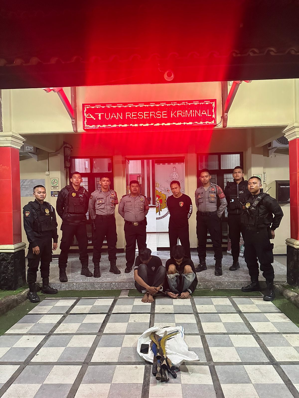 Patroli yang dipimpin oleh Kanit Turjawali, Aipda Juremi Darsono, S.H., berhasil mengamankan sembilan senjata tajam (sajam) dari tangan gerombolan remaja tersebut sebagai barang bukti. Kejadian ini terjadi sekitar pukul 02.46 WIB.