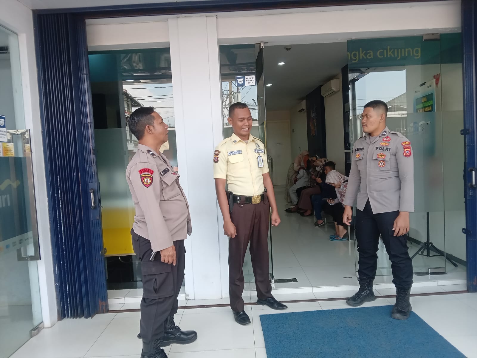 Petugas patroli melaksanakan giat sambang dengan sasaran Bank BNI dan Bank Mandiri Cikijing serta adakan dialogis dengan security bank guna memberikan imbauan kamtibmas.