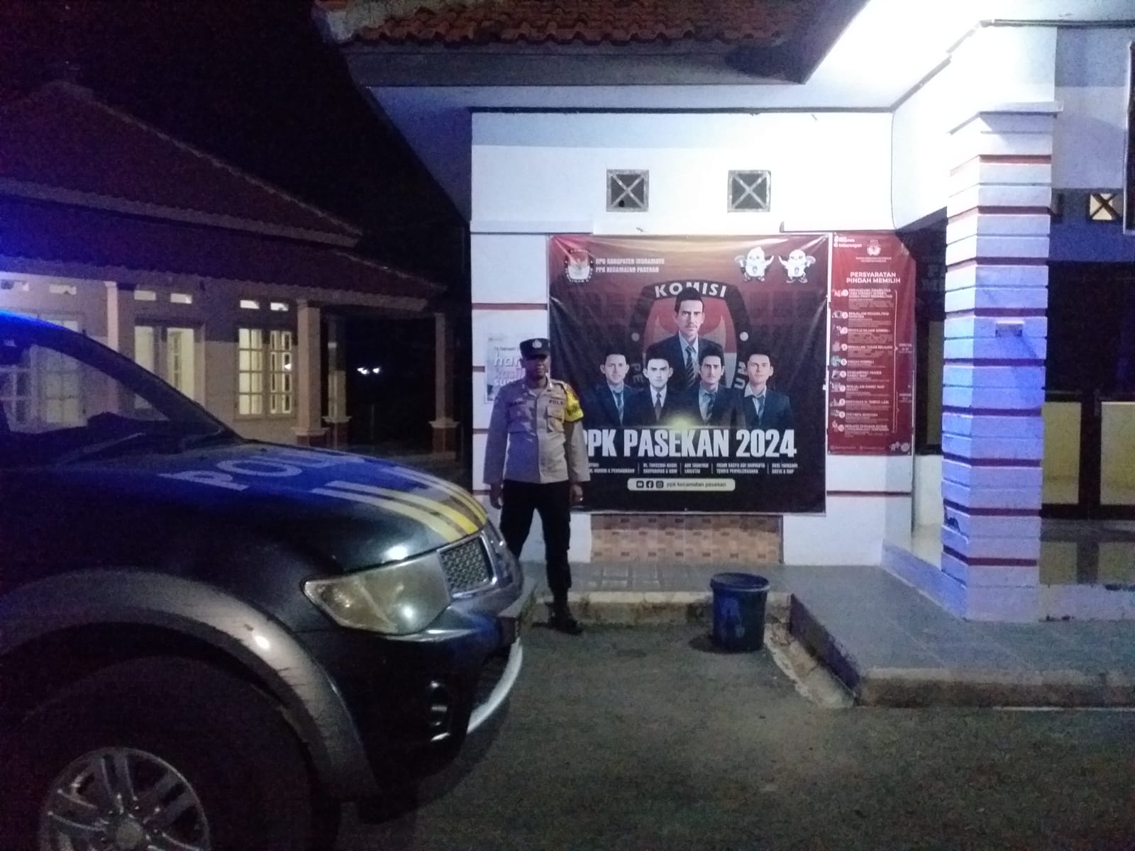 Indramayu – Dalam rangka Operasi Mantap Brata tahun 2023-2024, Polsek Pasekan jajaran Polres Indramayu Polda Jabar melakukan patroli ke Kantor Panitia Pemilihan Kecamatan (PPK) Kecamatan Pasekan, Kabupaten Indramayu. Jumat (20/10/2023) malam
