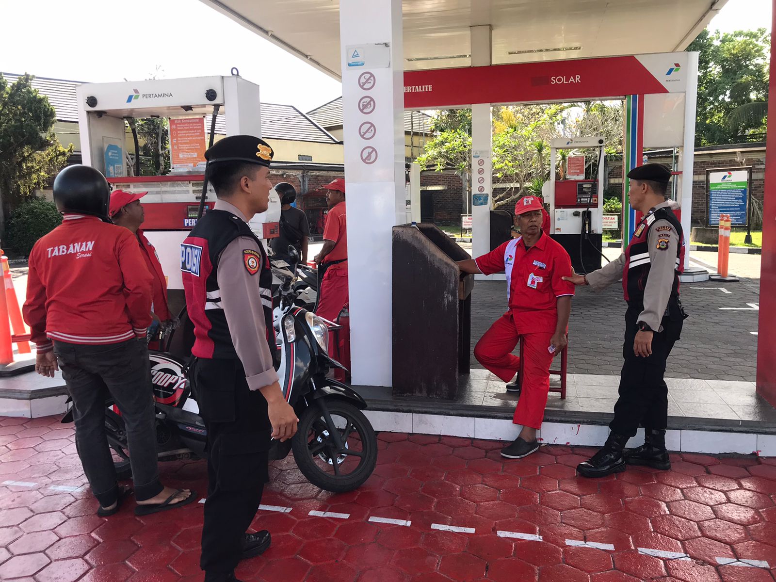 Selain tempat tempat tersebut Personil juga di gerakkan untuk melakukan pemantauan keamanan di SPBU yang ada di Kecamatan Tabanan dan Kediri serta melaksanakan kegiatan pengecekan ketersediaan bahan bakar minyak (BBM) di masing-masing SPBU”. Ungkap Kasat Samapta.
