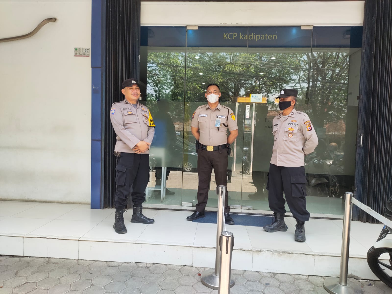 Disela-sela pelaksanaan kegiatan tersebut, personel Polsek Kdp berhenti sejenak untuk memberikan himbauan kepada anggota security dan nasabah yang ditemui di Bank Mandiri Kadipaten.