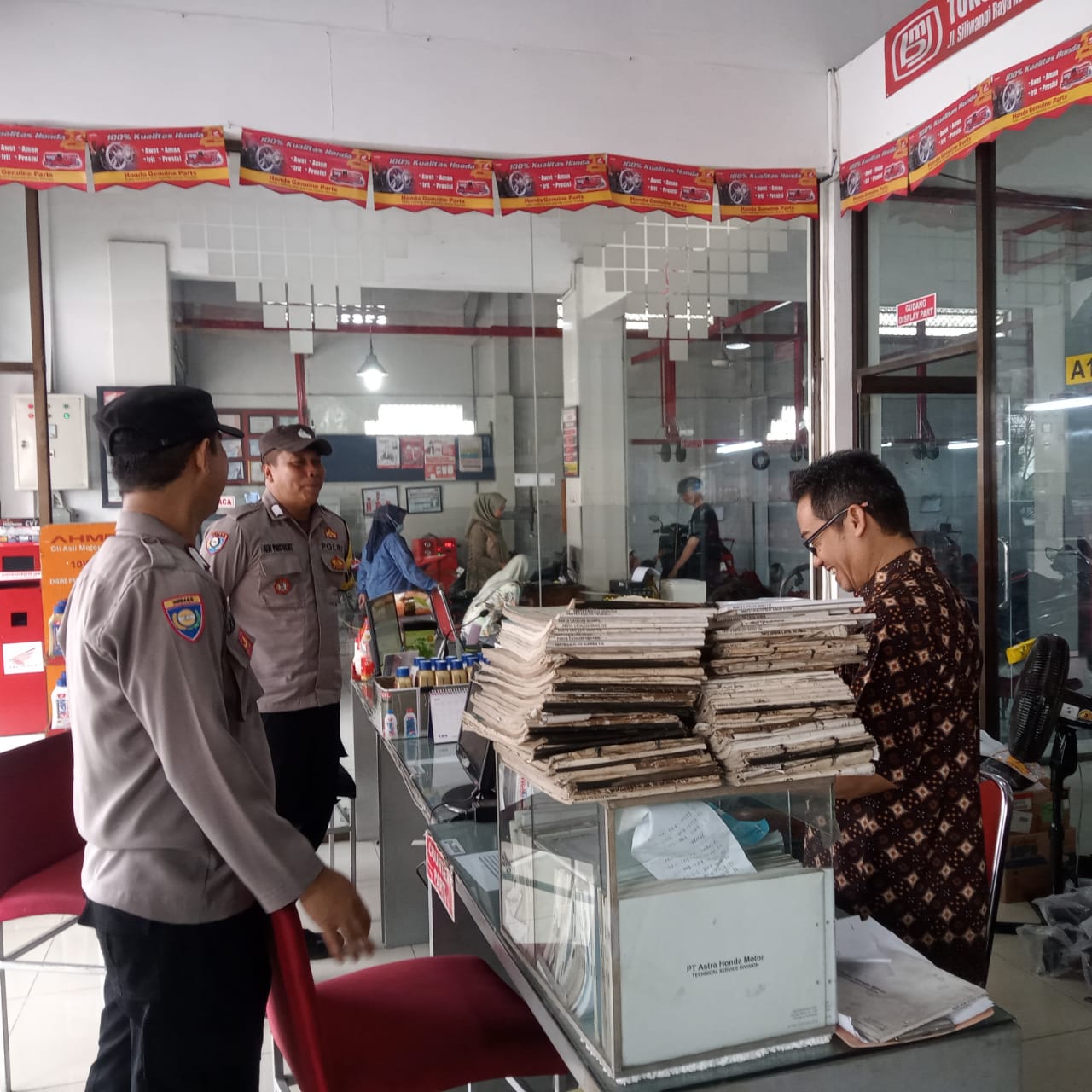 Majalengka, – Personel Polsek Kadipaten, Polres Majalengka, Polda Jabar, melaksanakan patroli siang dengan mengunjungi Dealer Honda Kadipaten, Kabupaten Majalengka. Dalam kegiatan ini, Bripka Cecep Basuki Rahmat, S.H., dan Bripka Bib Abi Musyadat memberikan imbauan kamtibmas serta mensosialisasikan layanan call center 110 kepada karyawan dan pelanggan dealer. Senin (3/6/2024).