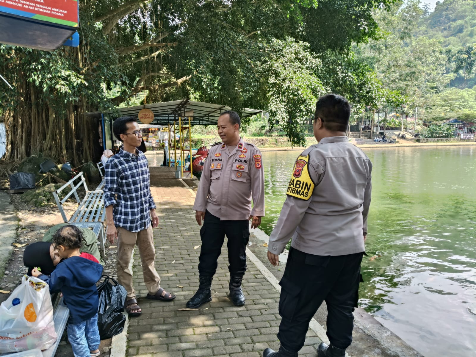 Kanit Samapta Polsek Sukahaji, IPDA Riyana, bersama anggota patroli, melakukan kunjungan ke Tempat Wisata Situ Cipanten. Dalam kesempatan tersebut, mereka berinteraksi dengan pengunjung, menyampaikan pesan-pesan kamtibmas, dan memberikan himbauan agar selalu berhati-hati serta mematuhi norma-norma dan aturan yang berlaku.