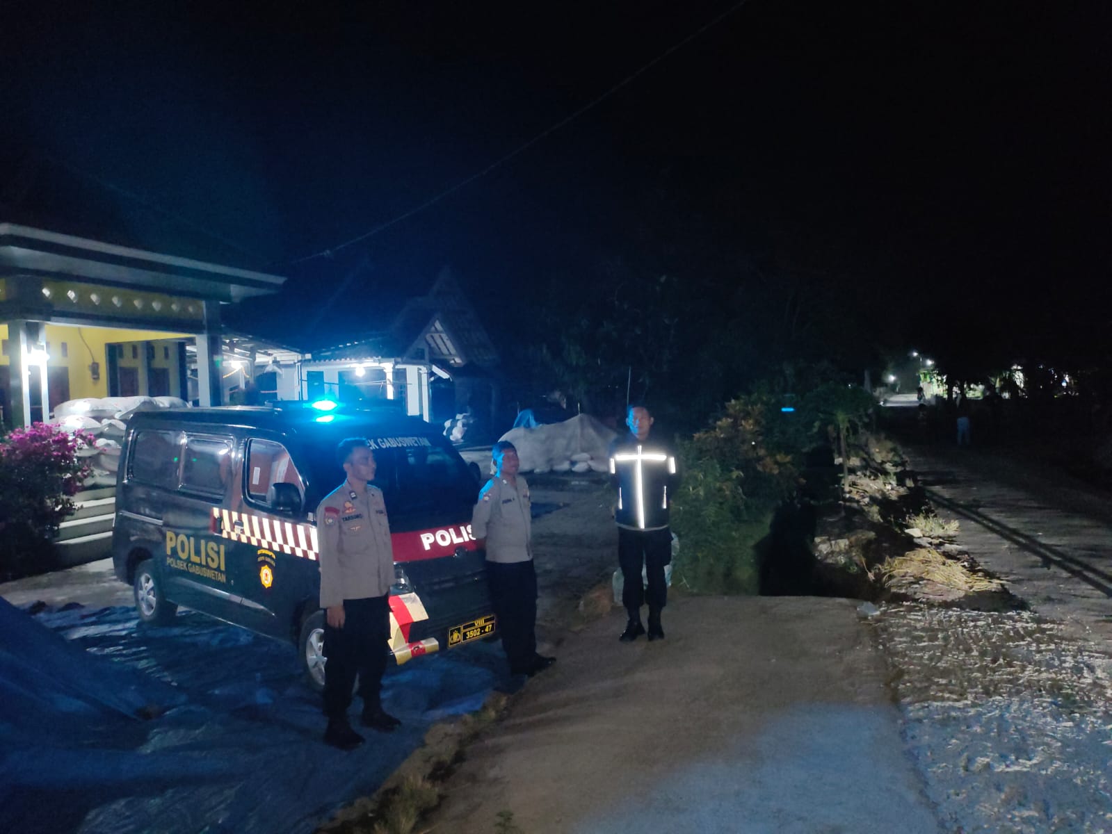 Indramayu – Dalam upaya menjaga keamanan dan ketertiban masyarakat, Polsek Gabuswetan jajaran Polres Indramayu Polda Jabar kembali melaksanakan patroli malam hari dengan menyalakan lampu rotator berwarna biru.