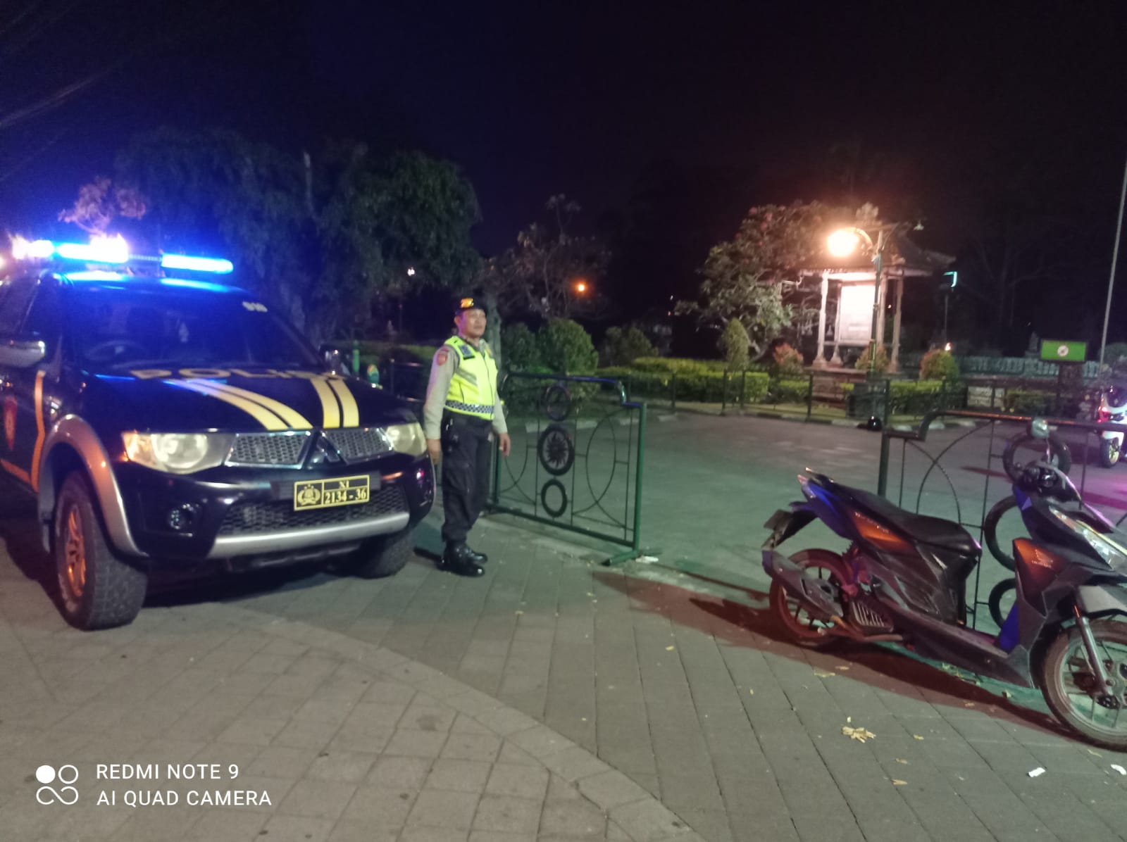 Perwira Pengawas (pawas) Polsek Mengwi Ipda I Nyoman Ardika memimpin pelaksanaan kegiatan patroli biru dikawasan obyek wisata taman ayun, Lingkungan Banjar Pande, Desa Mengwi, Kecamatan Mengwi, Kabupaten Badung, Bali. Jumat (13/10/2023) pukul 21.00 wita