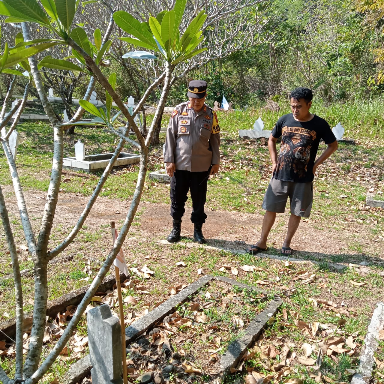 Dalam kegiatan itu, Kapolsek Kdp AKP Nana Suhana membersihkan makam dan akan merenovasi makam anggota Polri.