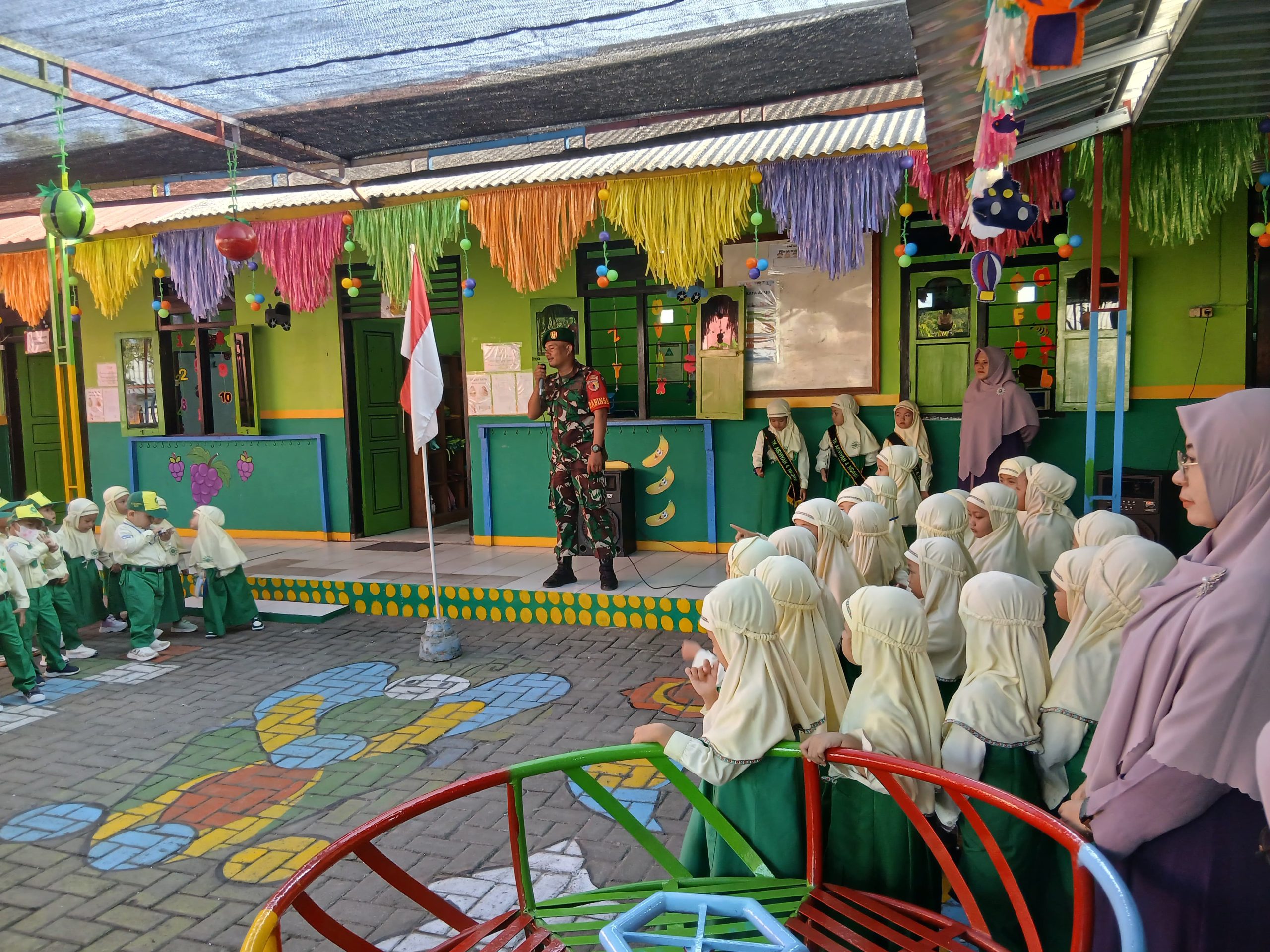 Peduli Pendidikan Dini, Serda Basori Jadi pembina Upacara di TK Aisiyah Ngawi
