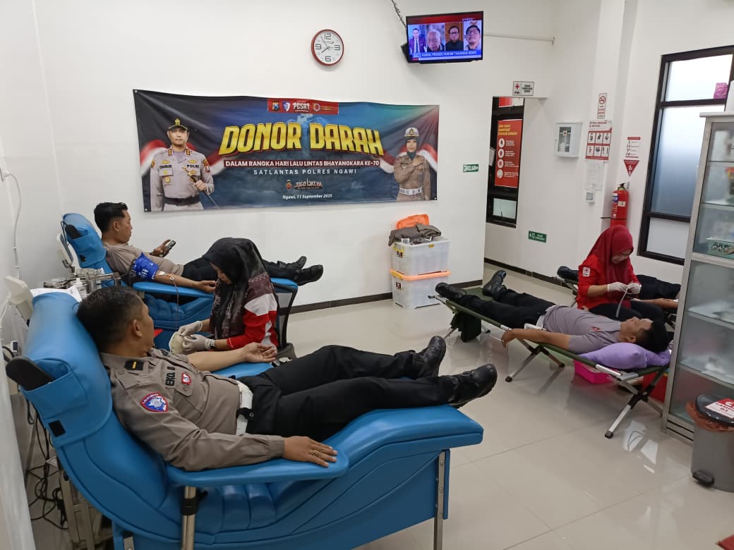 Com group– Dalam rangka memperingati Hari Keselamatan serta HUT Lalu Lintas Bhayangkara ke-70 tahun 2025, Satlantas Polres Ngawi menggelar kegiatan donor darah, bertempat di kantor PMI Ngawi