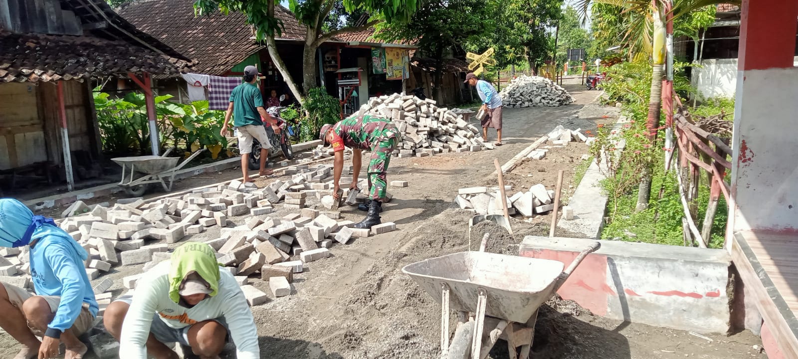 Perbaikan jalan yang sebelumnya sudah dipaving ini mengalami kerusakan dan berlubang sehingga kami selaku Babinsa langsung berpatisipasi dan membantu proses pemasangan paving dengan harapan akses jalan bisa dilalui dengan nyaman dan aman,”imbuhnya.