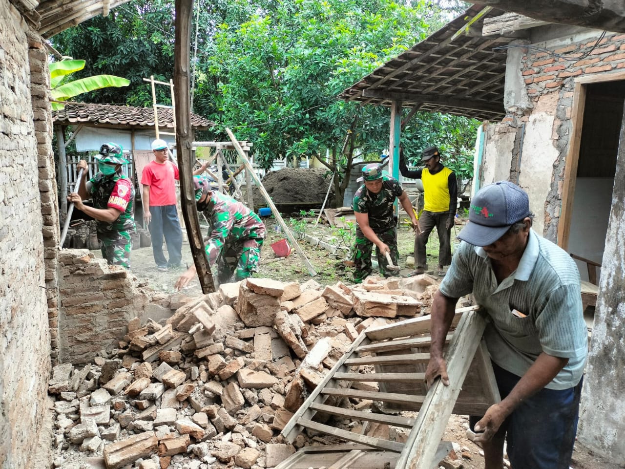 Ngawi – Sebagai wujud kepedulian TNI dalam meringankan dan mengatasi kesulitan rakyat di sekelilingnya, Anggota Koramil 06/Kwadungan Kodim 0805/Ngawi Sertu Awaludin membantu membongkar rumah milik Suyatni yang tinggal di Desa Kwadungan Kecamatan Kwadungan, Jum’at (22/11/2024).