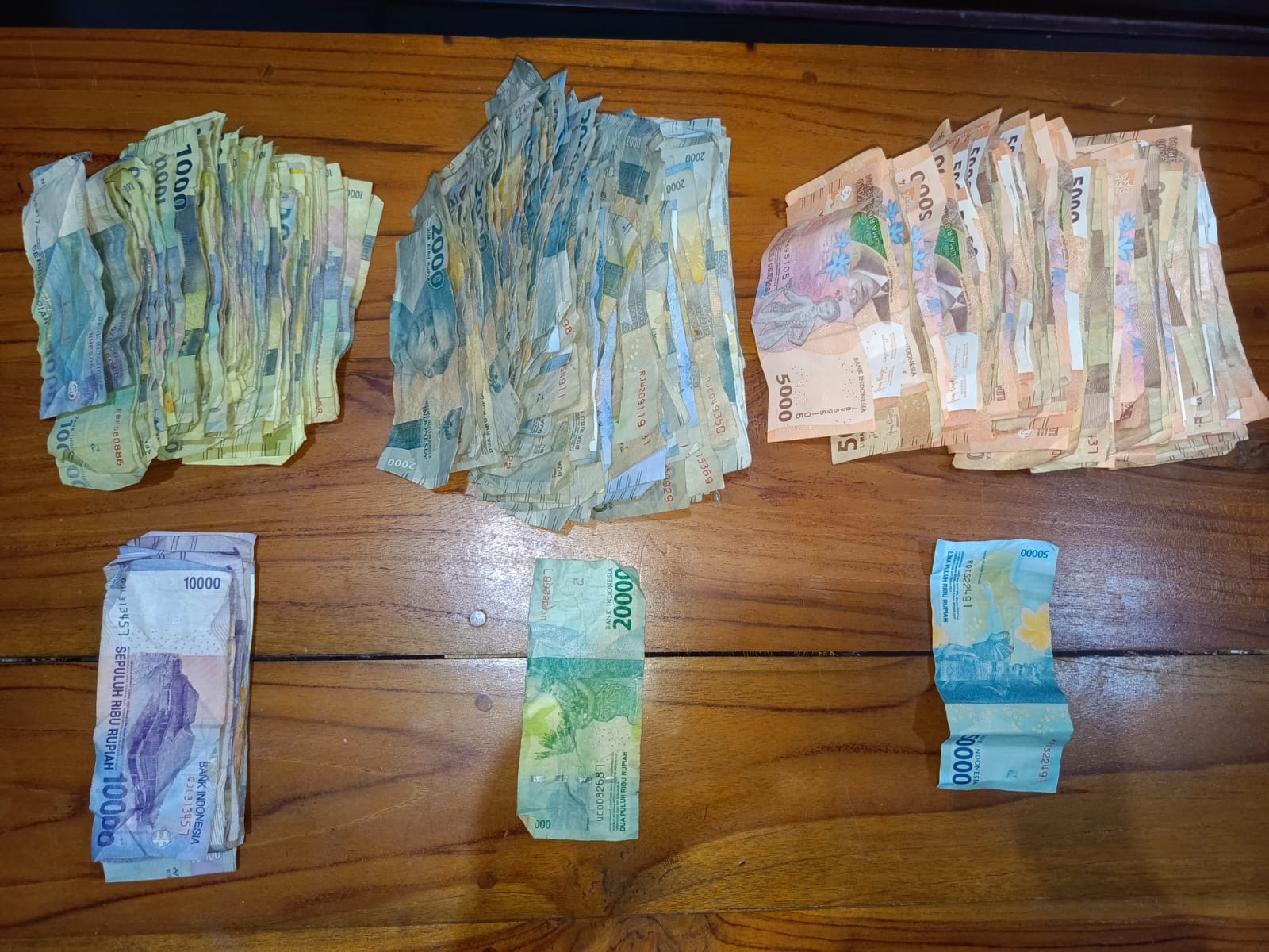 – Uang tunai sebesar Rp. 1.605.000,- ( satu juta enam ratus lima ribu rupiah) dalam bentuk pecahan