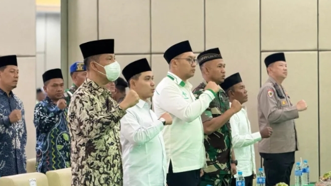 MOJOKERTO, BUSERJATIM.COM-Bupati Mojokerto Muhammad Albarraa menghadiri pelantikan Pengurus Cabang Nahdlatul Ulama (PCNU) Kabupaten Mojokerto masa khidmat 2025-2030 di Hall Nine Stars, Kantor PCNU Kabupaten Mojokerto. Kehadiran Bupati bersama Wakil Bupati Muhammad Rizal Oktavian menunjukkan dukungan Pemerintah Kabupaten Mojokerto dan komitmen untuk bersinergi dengan PCNU dalam program pembangunan.