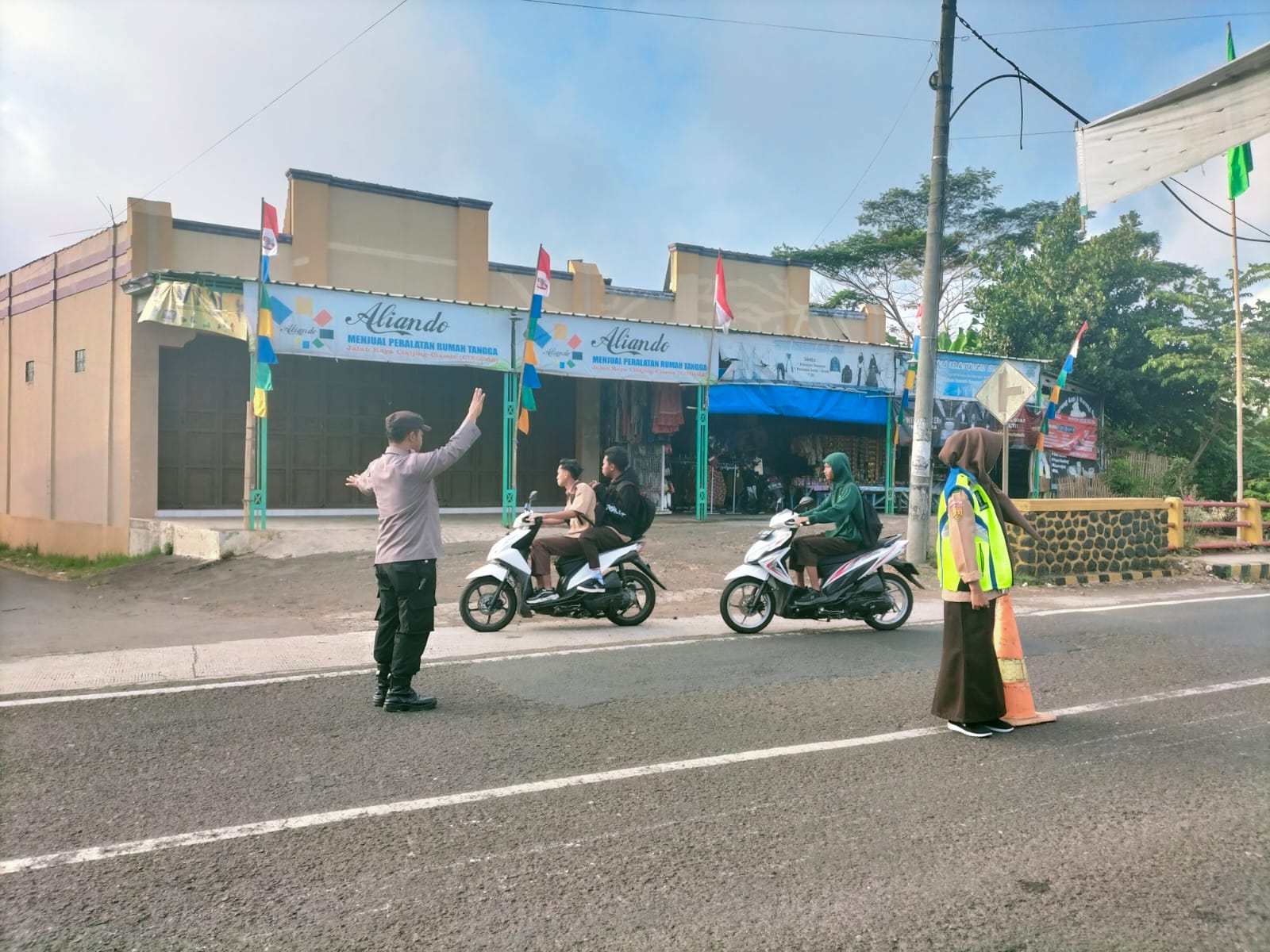 Majalengka – Setiap pagi hari Personil Polsek Cikijing Polres Majalengka Polda Jabar selalu hadir di tengah-tengah masyarakat yang membutuhkan pelayanan masyarakat terutama pengguna jalan, Ps. Panit Samapta l Aipda Eman Subagja melaksanakan kegiatan pengaturan arus lalu lintas di depan SMK PUI Cikijing, Sabtu (26/08/2023).