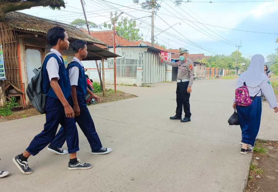 Indramayu,— Unit lalu lintas Polsek Terisi jajaran Polres Indramayu Polda Jabar melaksanakan kegiatan pengaturan lalu lintas pagi, di jalan raya depan SMPN 1 Terisi, Kecamatan Terisi, Kabupaten Indramayu, Selasa (12/09/2023).