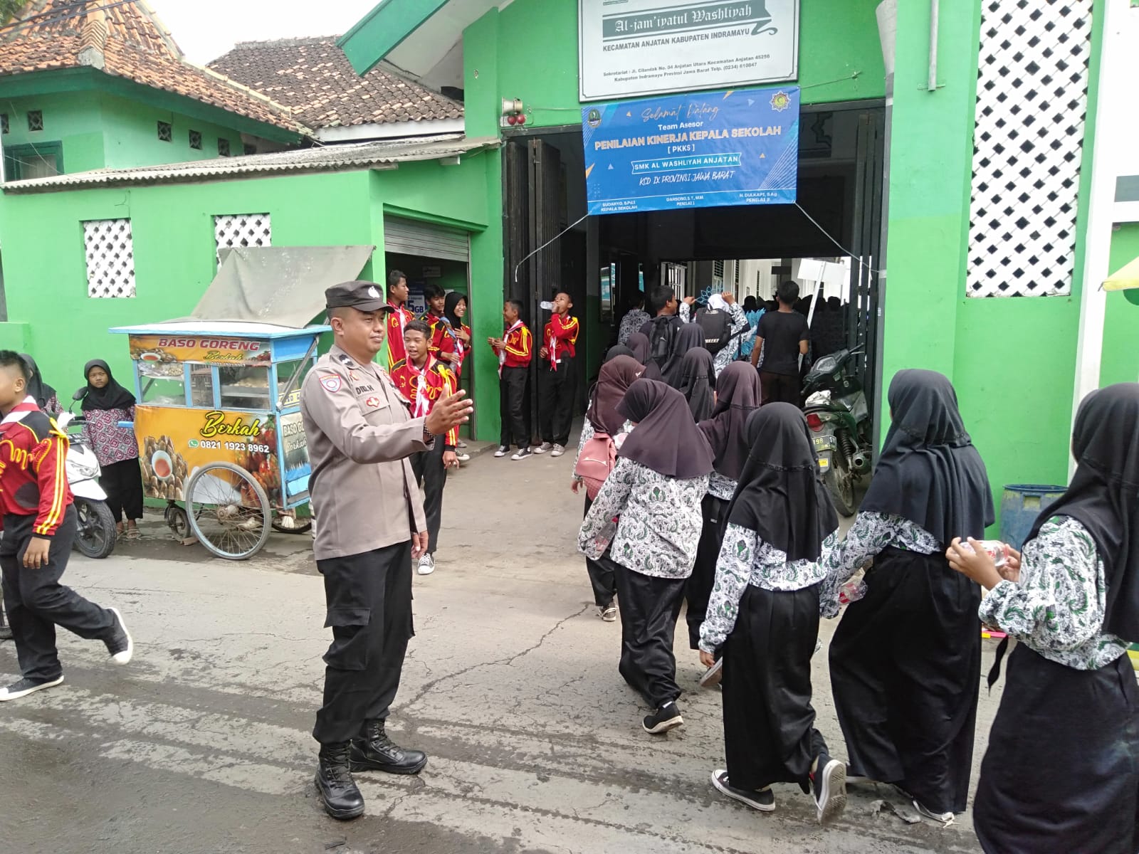 Kapolsek Anjatan AKP H. Rasita mengatakan Unit Patroli Personil Polsek Anjatan, melaksanakan giat Gatur Lalu lintas di pagi hari di jalan Depan MTS Alwasliyah Anjatan Kecamatan Anjatan Kab Indramayu.