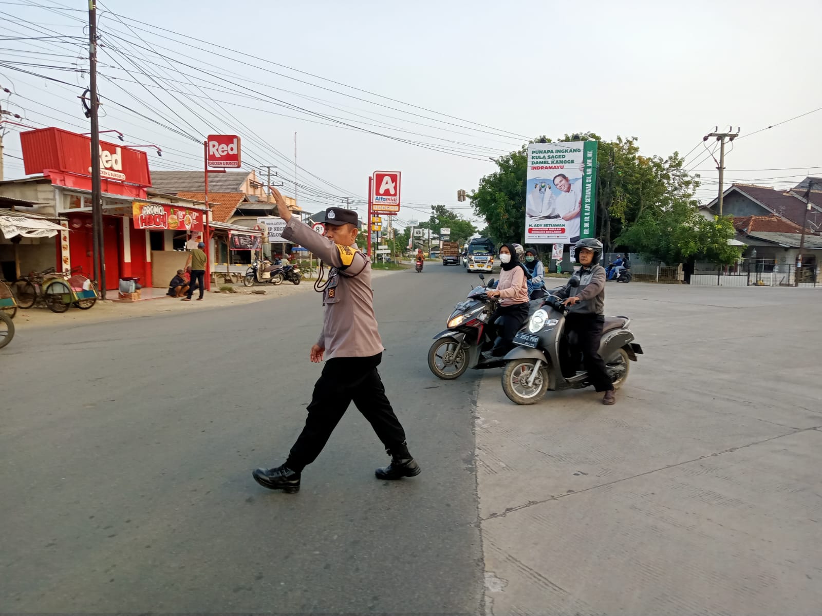 Pengaturan lalu lintas di pagi hari merupakan rutinitas yang dilakukan oleh Polsek Balongan.