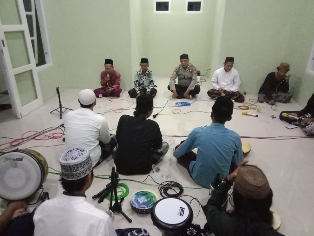 Kapolsek Sliyeg, AKP Sutrisno, S.H., M.H., diwakili oleh Aiptu H. Yandi, turut hadir dalam kegiatan ini bersama pimpinan Hadroh Ar-Rahman Mangir Desa Sliyeg, Imron.