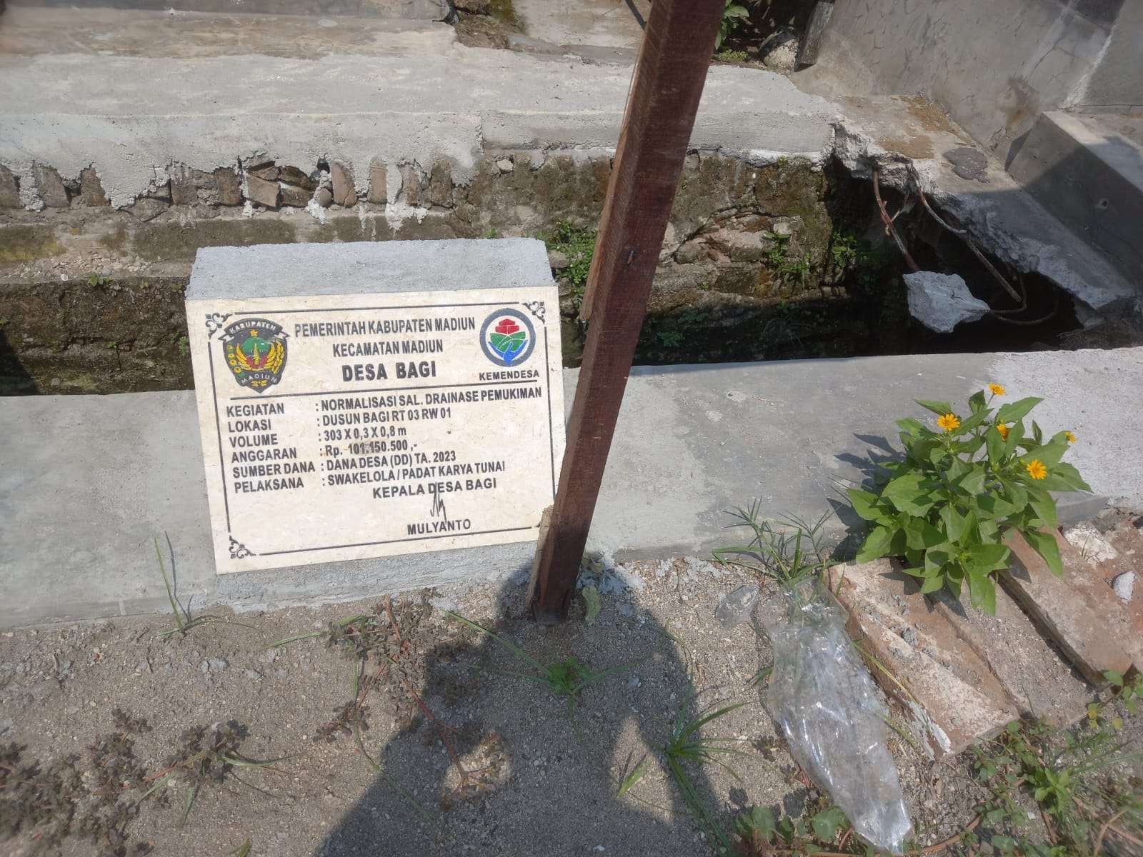 Menurut Kepala desa Bagi H.Mulyanto bahwa di tahun ini 2023, Pemerintah desa Bagi mengadakan kegiatan berupa pembangunan Tembok Penahan Tanah dengan panjang 300 M, dengan Anggaran dari DD sebesar Rp.101.150.000.