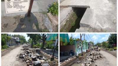 “Pembangunan tersebut dilaksanakan bertujuan untuk menstabilkan kondisi tanah, untuk meningkatkan kuwalitas jalan. Selain berfungsi sebagai penyangga tanah supaya tidak longsor, Tembok ini diharapkan juga sebagai penahan tanah di saluran air yang airnya untuk pengairan persawahan warga, sehingga aliran air bisa mengalir dengan lancar dan bermanfaat bagi petani untuk mengairi sawahnya,” jelas mbah lurah, saat ditemui oleh awak media senin. (5/6/2023).