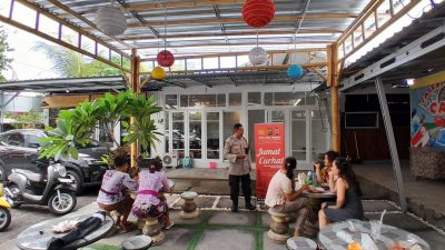 Kanit Binmas Polsek Bangsal Polres Denpasar Utara gelar kegiatan Jum’at Curhat bersama warga di sebuah resto warung nasi, di wilayah banjar Terunasari Desa Dauh Puri Kaja, Kecamatan Denpasar Utara, Jumat 08/12/23.