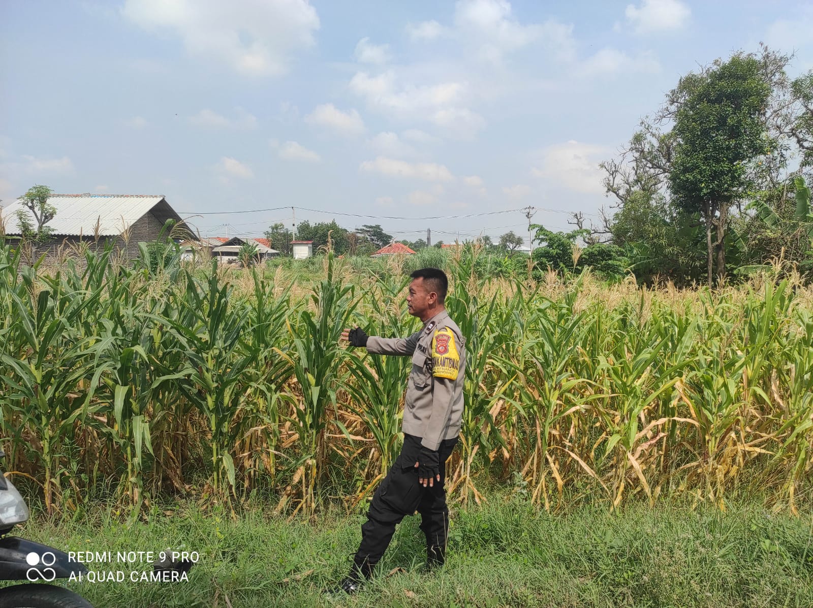 Bhabinkamtibmas Desa Kenanga, Aiptu Ade Kiki, bersama Kanit Binmas Aiptu Dedi Susanto, melakukan monitoring lahan seluas sekitar 300 meter persegi yang dimanfaatkan untuk penanaman jagung pipil.