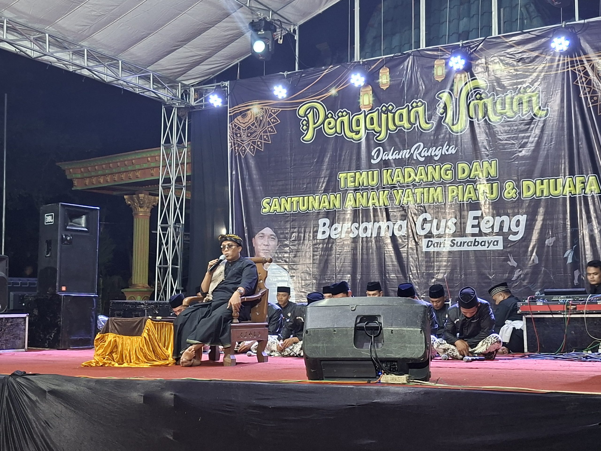 Acara tersebut menghadirkan penceramah utama Gus Eeng dari Surabaya, yang menyampaikan ceramah keagamaan dengan penuh hikmah dan kesejukan, memberikan pesan moral dan spiritual yang mendalam kepada seluruh hadirin.